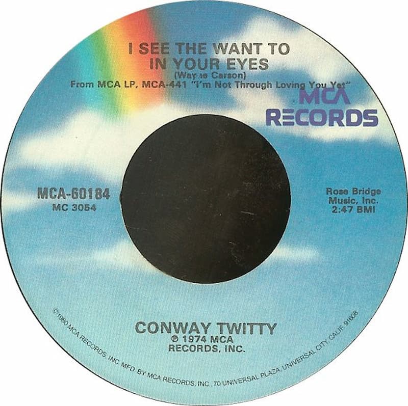 Twitty was blown away by the song, and had to pull over to the side of the road in order to re-gain his composure. The announcer mentioned the artist, but Conway had never heard of Gary Stewart (who was new at the time). Twitty personally did the research and when he excitedly found out that Stewart’s version of “I See The Want To In Your Eyes” wasn’t a song RCA was promoting for Gary, he took it into the studio. Conway’s version sailed into the #1 position on October 19, 1974 where it stayed for two weeks, marking his sixteenth of forty career chart-topping hits.